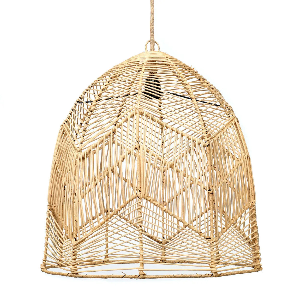Eine wunderschön handgefertigte Hängeleuchte aus Rattan, die sich perfekt in Schlafzimmer, Kinderzimmer, Wohnzimmer oder auf einer überdachten Terrasse einfügt. Ihre weiche, organische Textur verleiht Wärme und Tiefe, während die luftige Form ein sanftes Spiel aus Licht und Schatten erzeugt.Diese auffällige Boho-Lampe ist ideal, um jeder Ecke Ihres Zuhauses eine natürliche Note zu verleihen. Elektrische Kabel und Stecker sind nicht enthalten, aber passende Fassungen sind separat in unserem Shop erhältlich. Sie können zwischen Deckenmontage oder Stecker-Optionen wählen, je nach Bedarf.Da jede Lampe von Hand aus natürlichen Materialien gefertigt wird, können kleine Unters