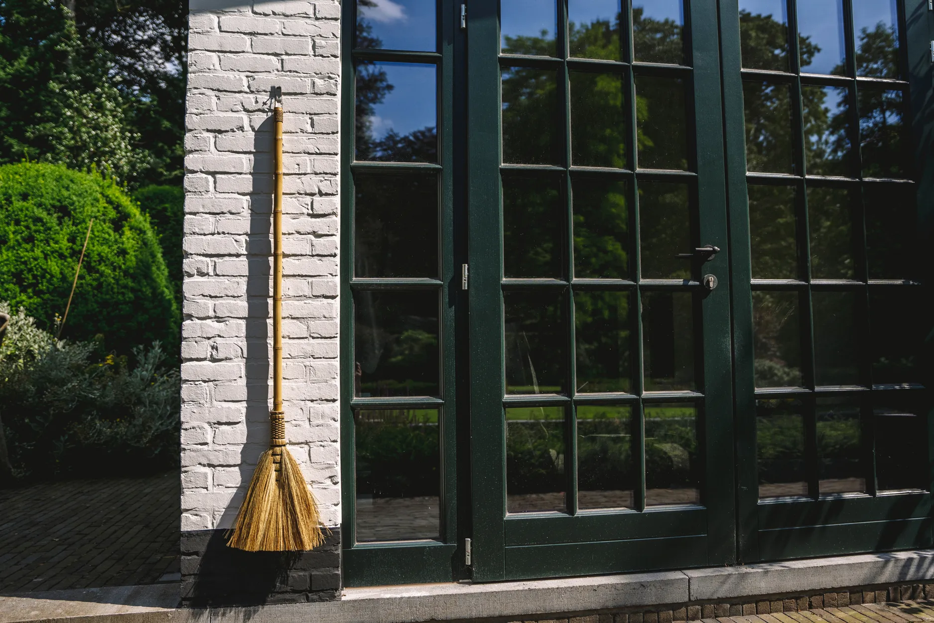 Der Große Dekorative Besen vermittelt ein Gefühl leiser Ruhe, sein langer natürlicher Griff lenkt den Blick nach oben während die feinen Grasfasern weich zur Basis fallen. Die Form wirkt vertraut und dennoch verfeinert und schafft einen Moment der Stille im Raum.