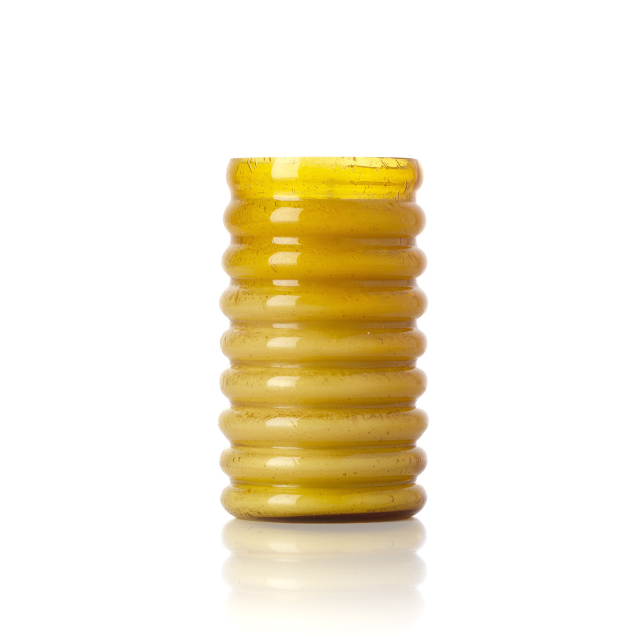 Das Golden Hive Kerzenglas feiert Form und Strahlkraft. Dieser gerippte Glas-Kerzenhalter steht hoch mit einem honigfarbenen Körper, der das Licht sanft reflektiert. Die strukturierte Oberfläche erzeugt Bewegung und Tiefe und wirft ein warmes, diffuses Leuchten, das Ruhe und Harmonie schafft.