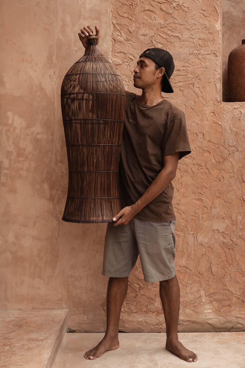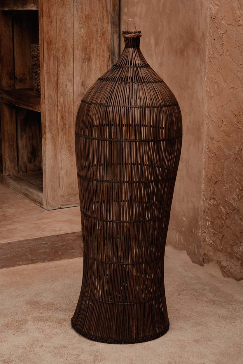 Von balinesischen Kunsthandwerkern von Hand geflochten spiegelt das Stück Geduld, Rhythmus und Präzision wider. Jede Kurve und jede Verbindung erzählt von einer Tradition in der Hände der Erinnerung der Bewegung folgen, eine dauerhafte Verbindung zwischen Handwerk, Kultur und der zeitlosen Wärme von Rattan.