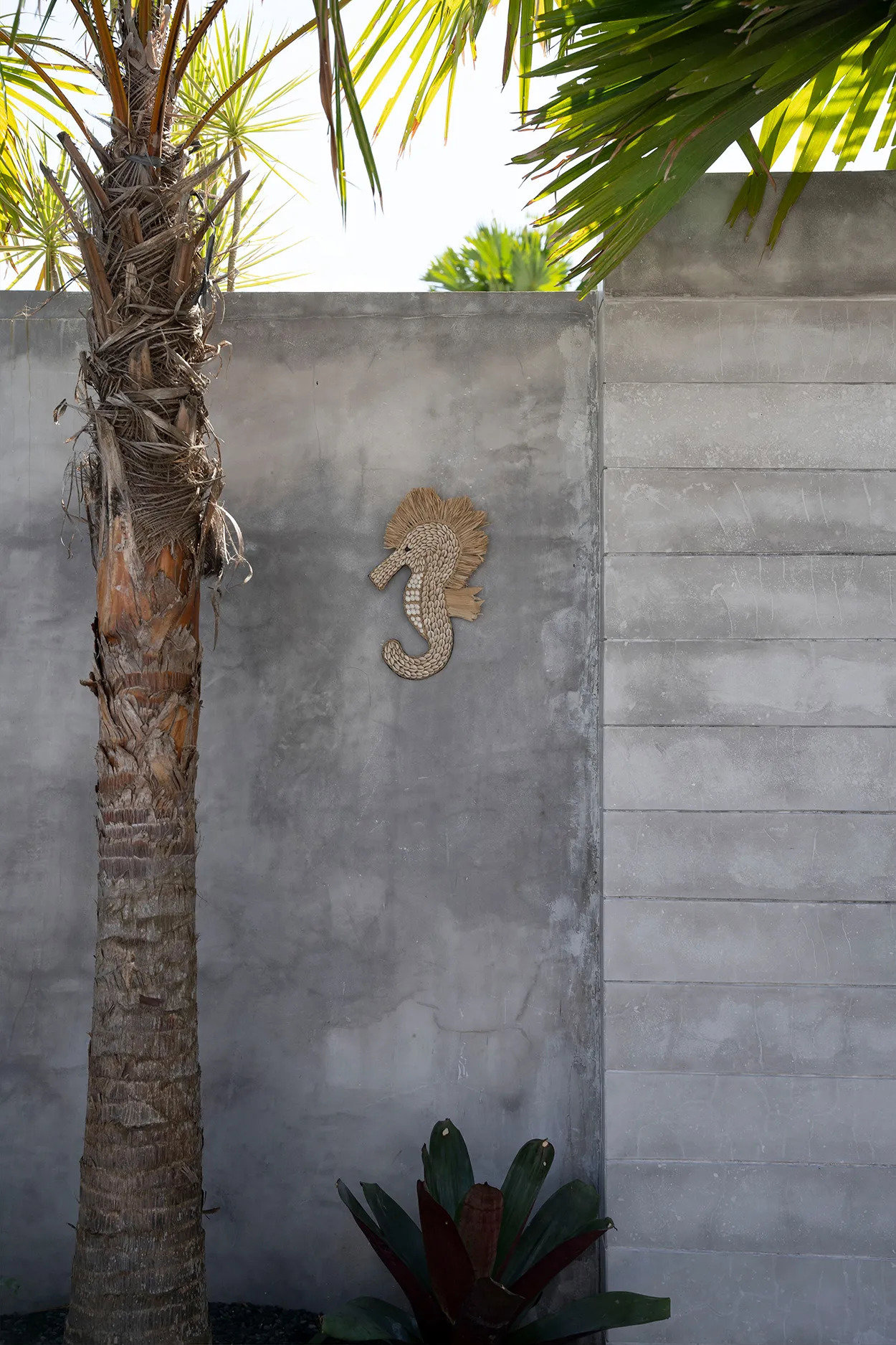 Dieses dekorative Seepferdchen ist komplett aus schönen weißen Muscheln gefertigt und mit Fransen aus Bast verziert. Es ist ein lustiges und wunderschönes Accessoire, das Sie an jedem beliebigen Ort aufhängen können. Es wird sicherlich Gesprächsstoff sorgen!