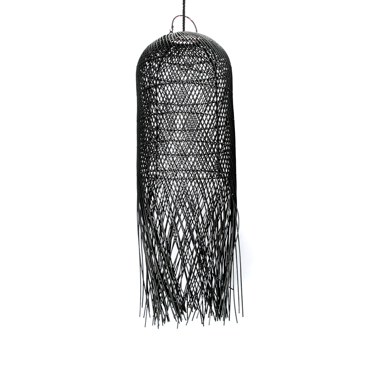 Die Squid Pendelleuchte ist eine schwarze Rattan Pendellampe, die durch Schatten, Textur und vertikalen Rhythmus Ruhe vermittelt. Ihre langgezogene Silhouette prägt sofort die Stimmung des Raumes.