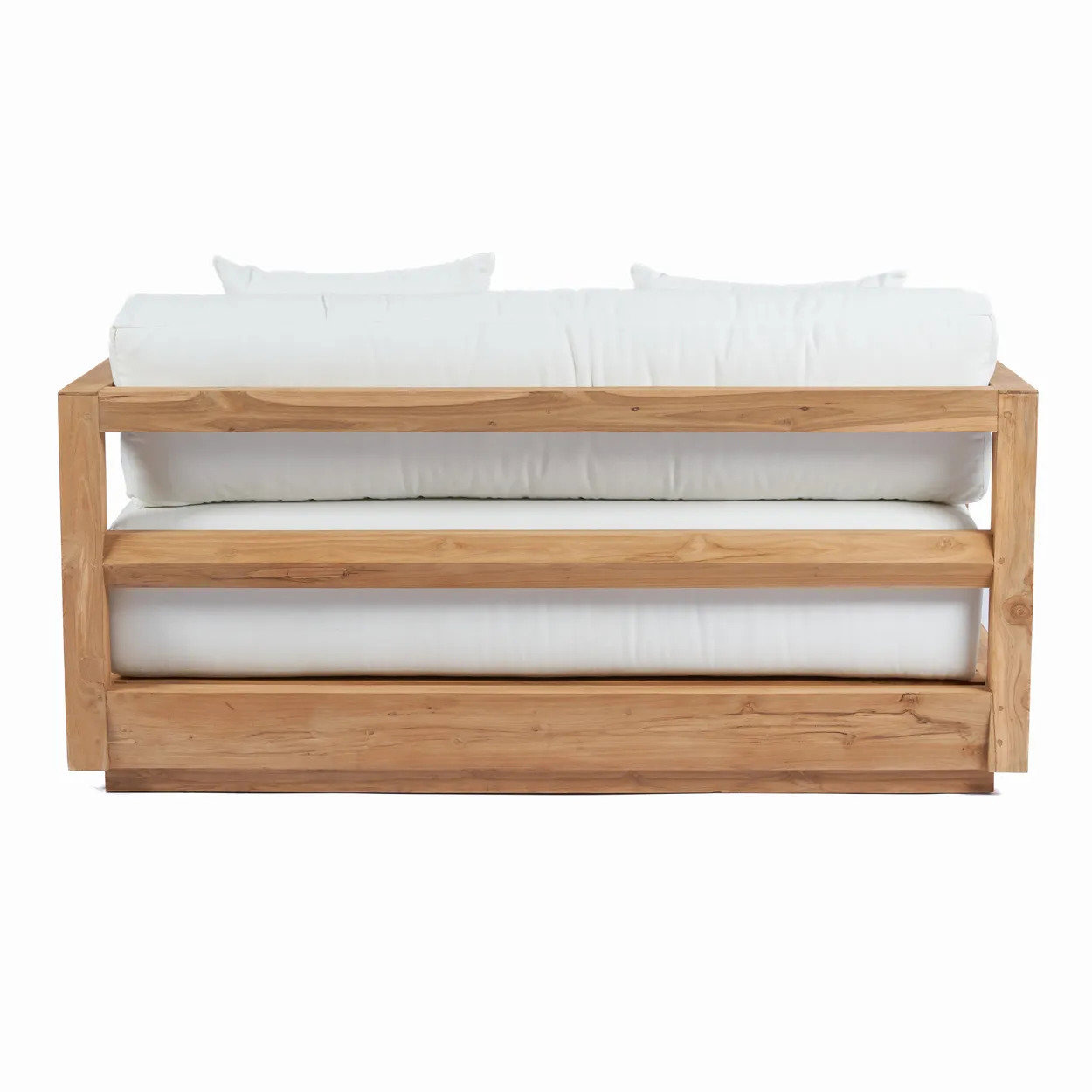 Lehnen Sie sich zurück und entspannen Sie sich in unserem Umalas Zweisitzer, geeignet für den Innen- und Außenbereich. Hergestellt aus recyceltem Teakholz, ist der Rahmen robust und umweltfreundlich. Die Kissen bestehen aus lokalem Sunbrella-Stoff und sind perfekt für Ihren Außenbereich. Dieses elegante Design sieht neben dem Pool oder auf der Veranda fantastisch aus.