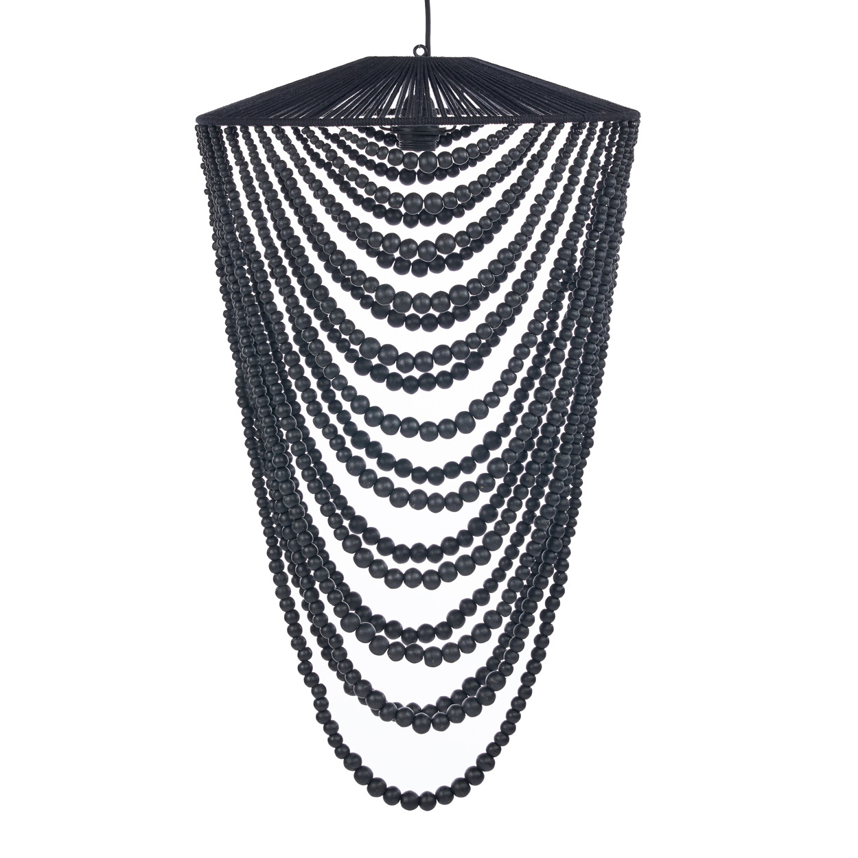Ideal für hohe, luftige Räume, vermittelt er architektonische Ruhe. Das matte Schwarz erdet den Raum und harmoniert perfekt mit Stein-, Leinen- oder Holzelementen. Zwischen den Perlen gefiltertes Licht schafft eine warme, intime Atmosphäre.