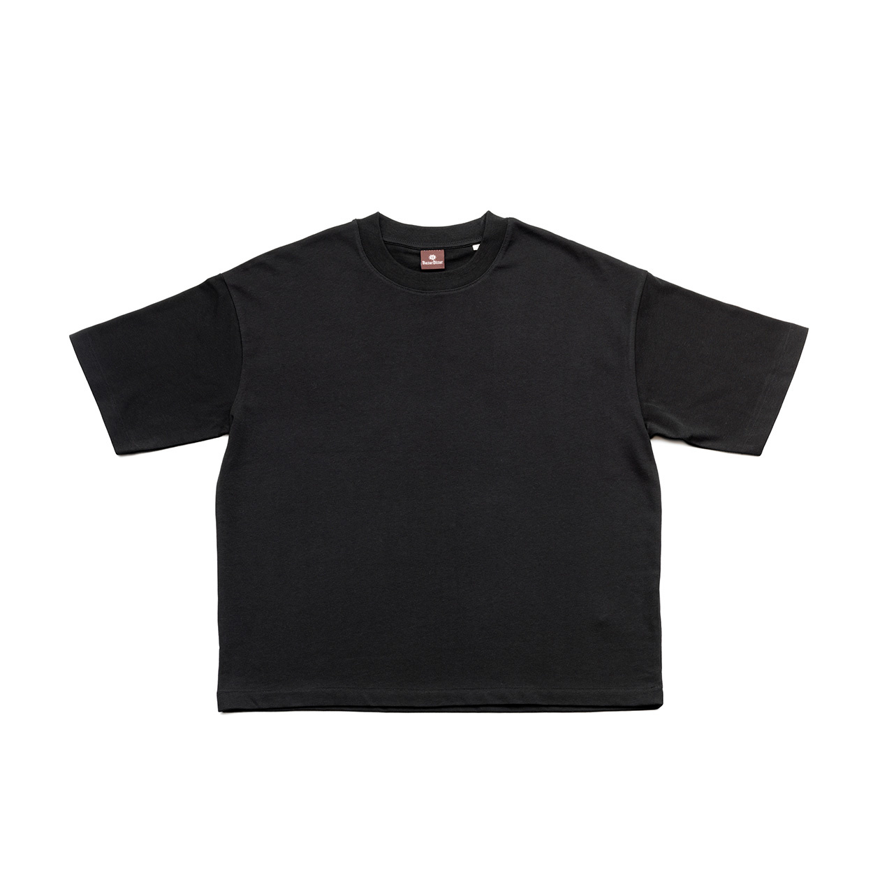 The Brand S/S T-Shirt begins with its emblem. The terracotta brandmark flows across the back in organic form, recalling cultural patterns and natural elements. Set against a black base, it radiates warmth and presence while keeping the look minimal and refined.
