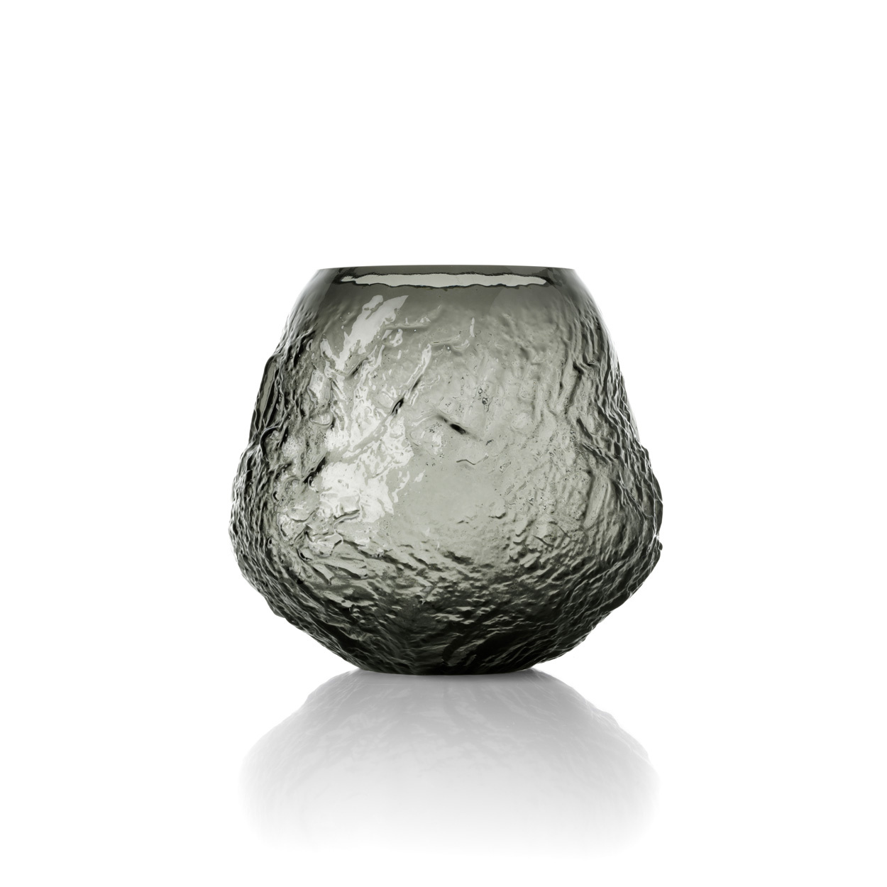 The Earth Crater Vase draws attention through contrast, the strength of form meeting the softness of light. As a black glass vase, it carries a deep, smoky hue that absorbs and diffuses reflection, turning daylight into texture and shadow that shift quietly across its surface.