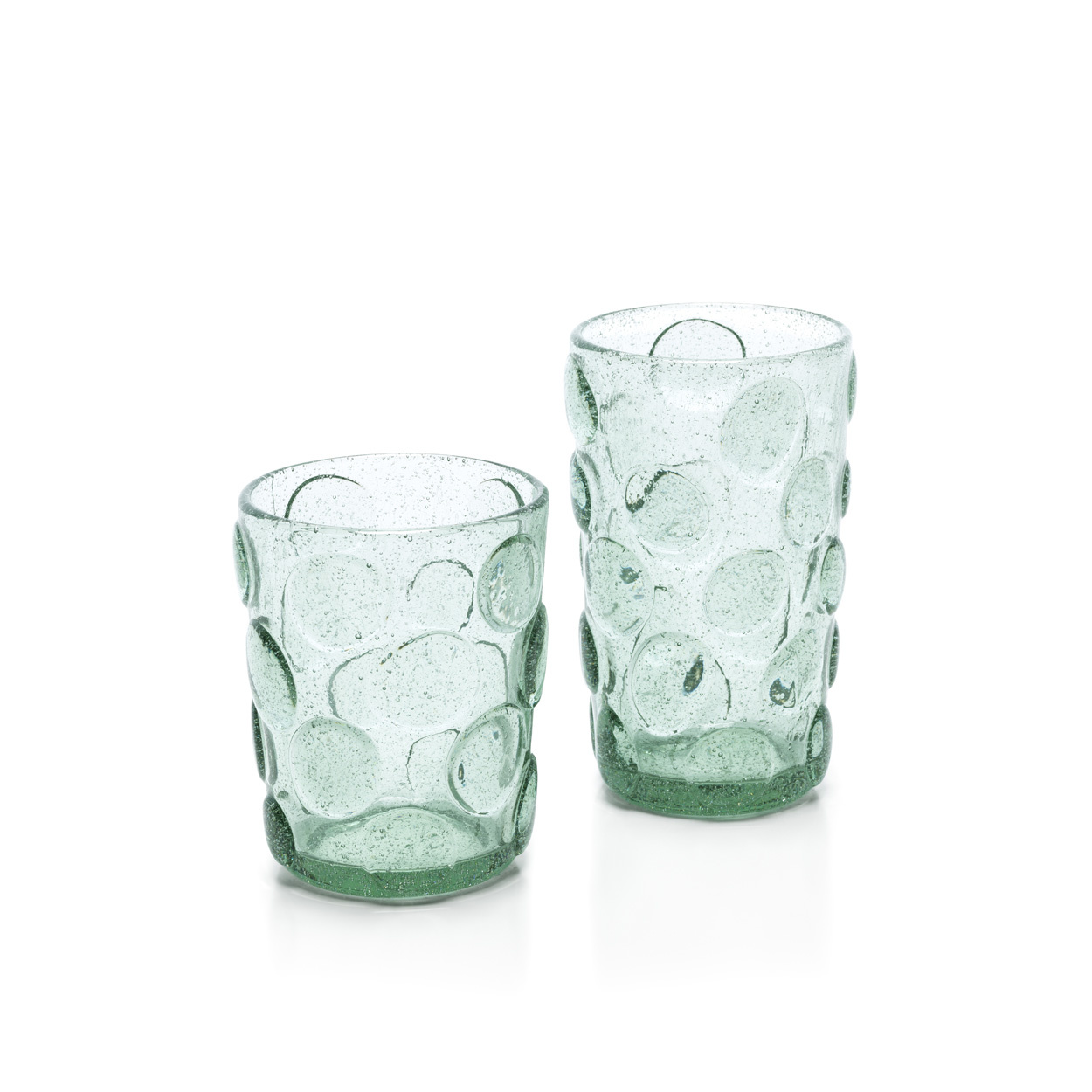 Refresh your table with an aqua highball glass, where playful dotted texture meets luminous recycled glass in a tall refined shape.