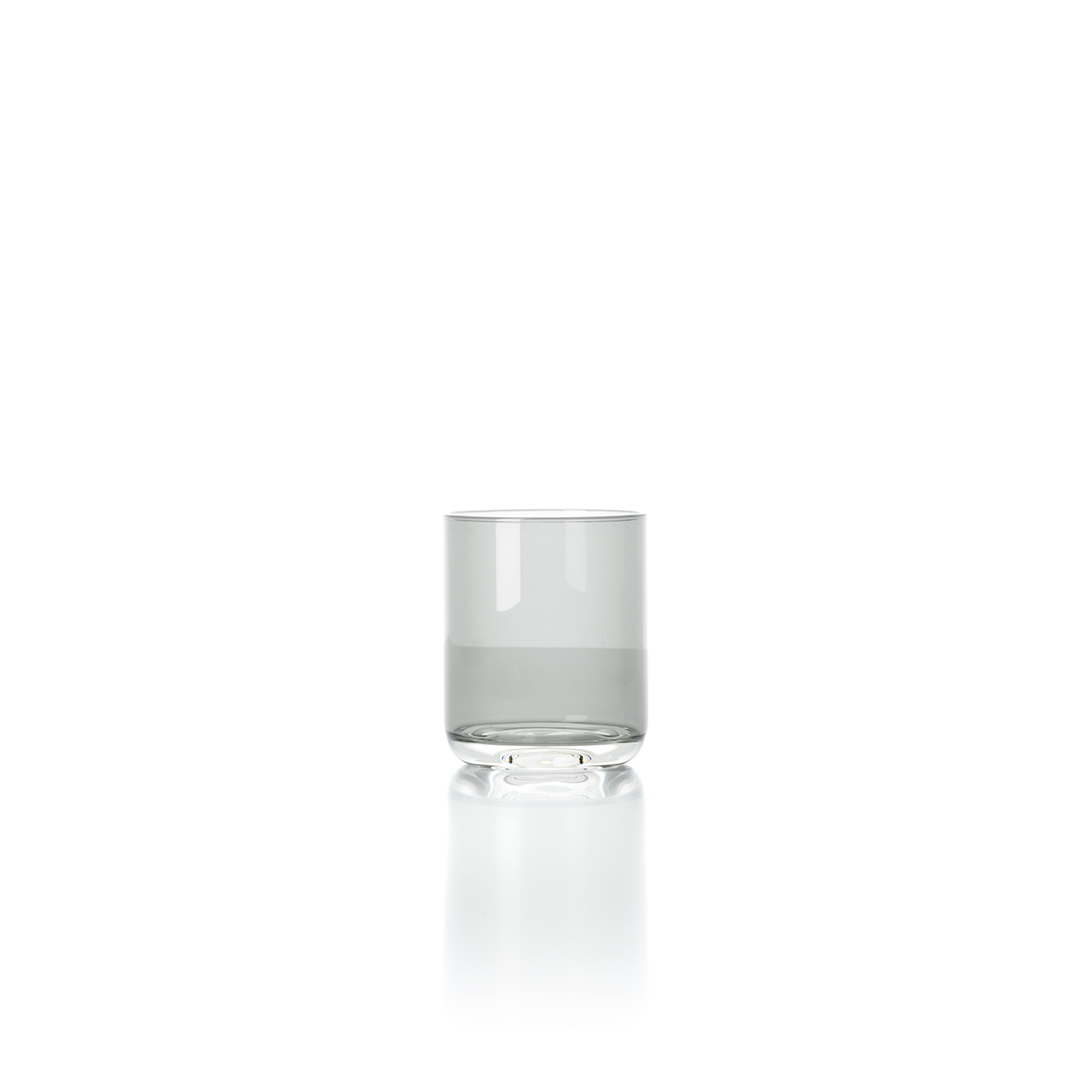 Minimalist grey drinking glass made from recycled materials. Refined form meets sustainability in a design for modern living.
