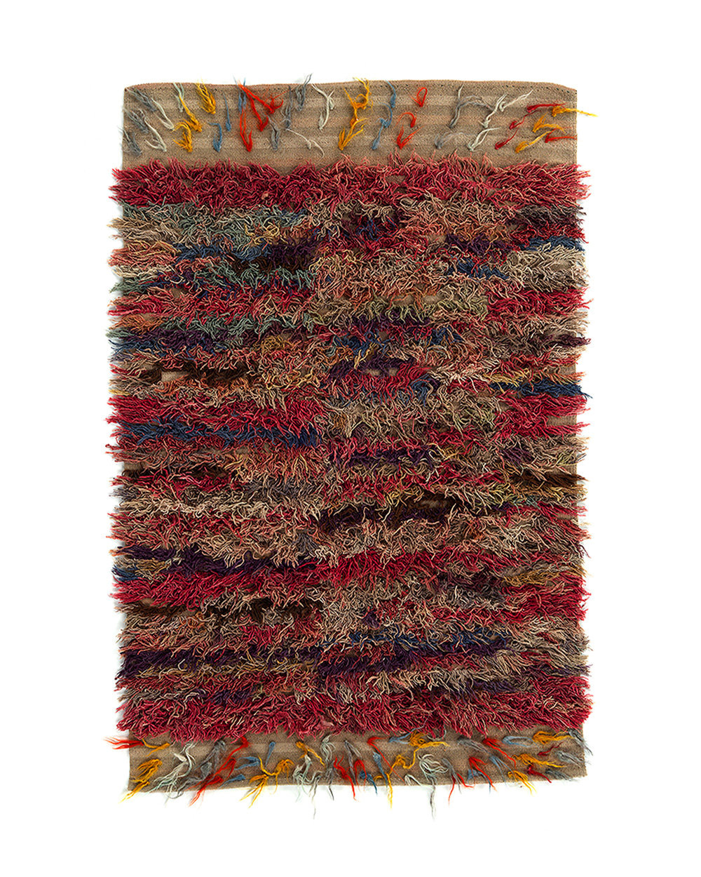 Texture takes the lead in The Handwoven Kelim Rug #985, where long, soft piles create a surface that feels inviting at first glance. This shaggy wool rug is woven to bring warmth and dimension, instantly softening interiors with its organic appeal.