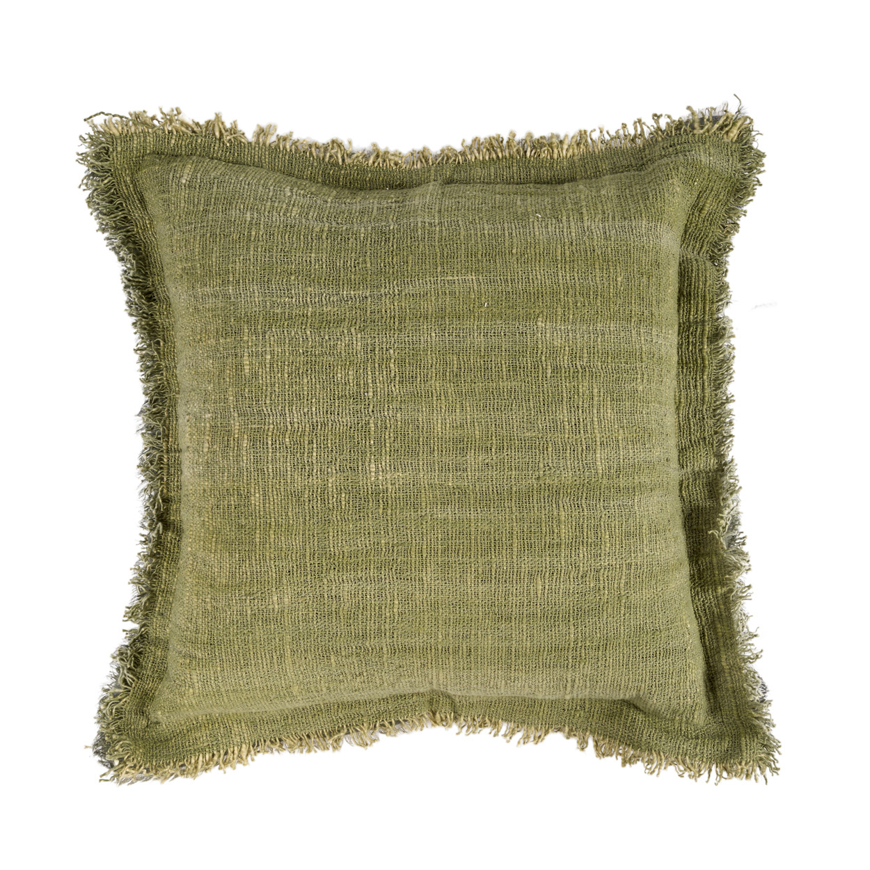 The square 50x50 cm format offers generous presence while remaining easy to style on sofas, chairs, or layered on a bed. Its muted green shade introduces natural harmony, blending seamlessly into both rustic and modern interiors. Cotton construction ensures durability with a breathable feel, making it suitable for everyday use.