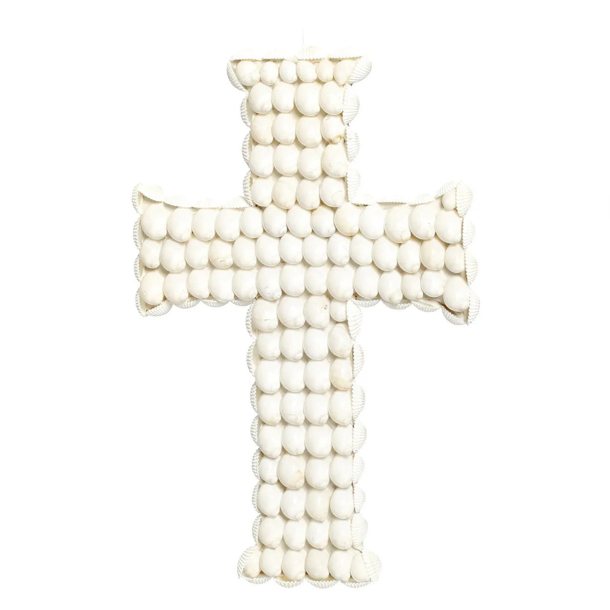 These beautiful decorative coastal crosses are covered in white shells that make up a pretty flower pattern. They look great hanging or laying on a table or shelf. A lovely coastal decoration must have!