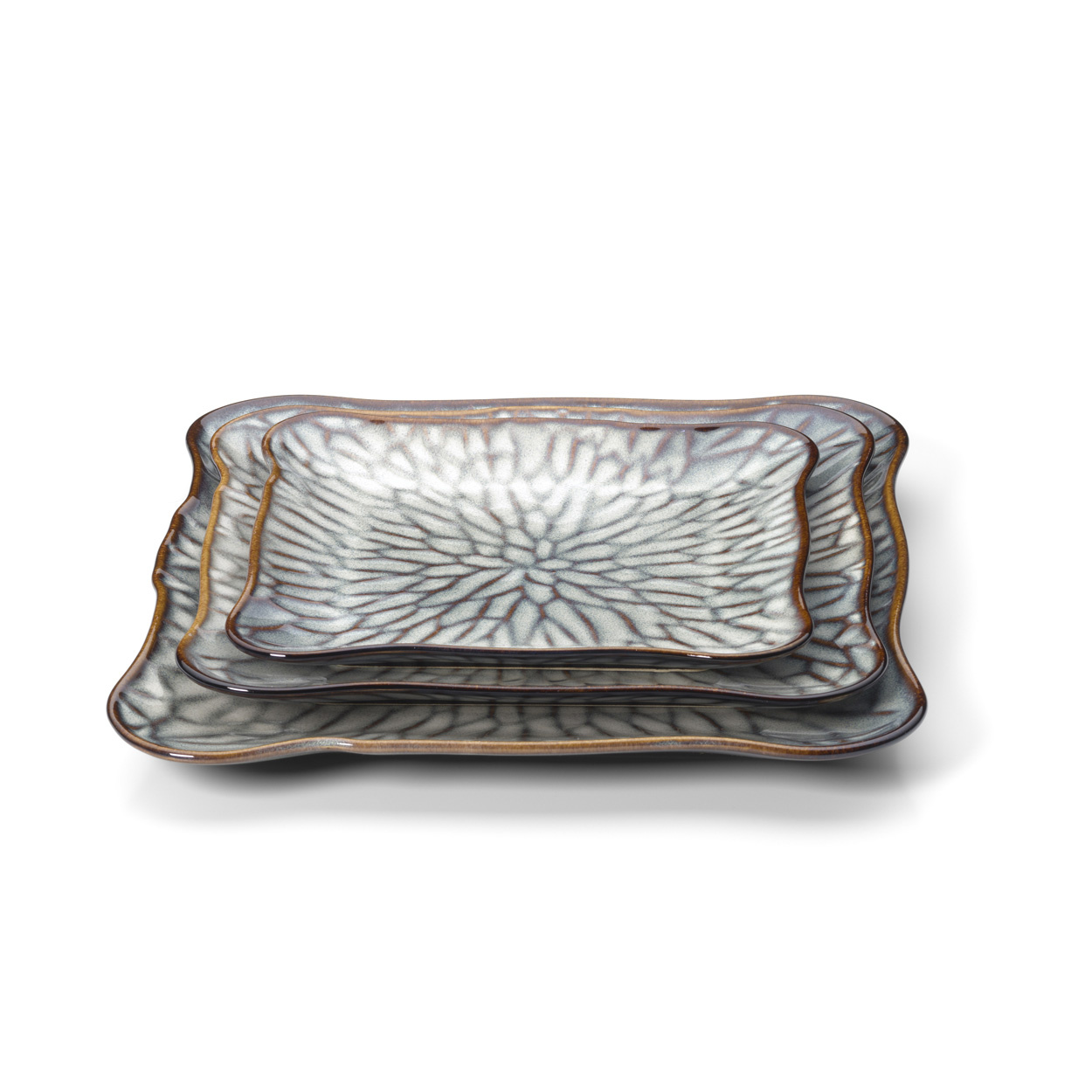 The Lotus Ice Square Plate - Grey Brown - M