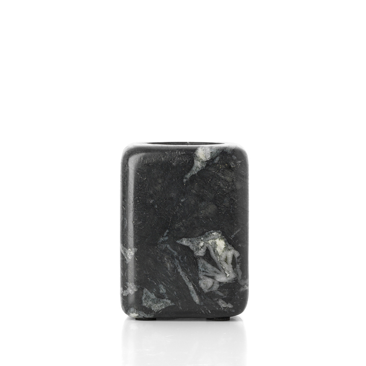 Serenity meets structure in The Marble Tooth Brush Holder. Crafted from rich marine-toned marble, this black marble toothbrush holder introduces quiet elegance and a sense of permanence to modern spaces. Its minimalist silhouette and organic veining create a striking balance of form and texture.