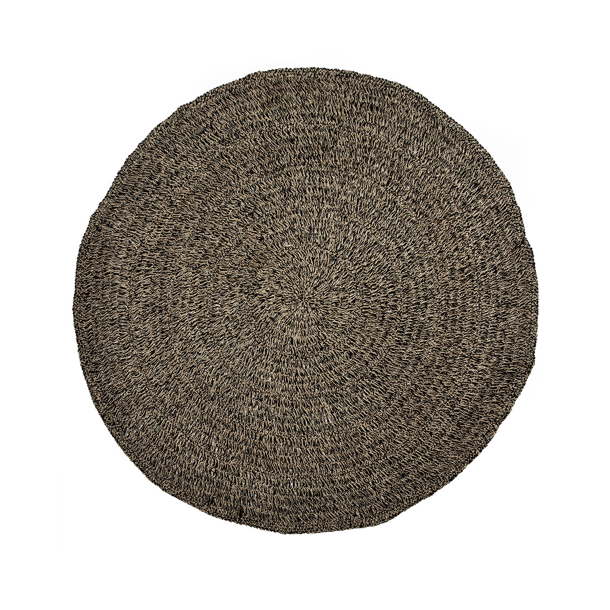 Product description Our circular seagrass carpet, made of raffia, sisal and palm, has a natural and black color, adding texture and softness to a hard floor. Naturally hard wearing, ideal for your kitchen, living space or covered patio.