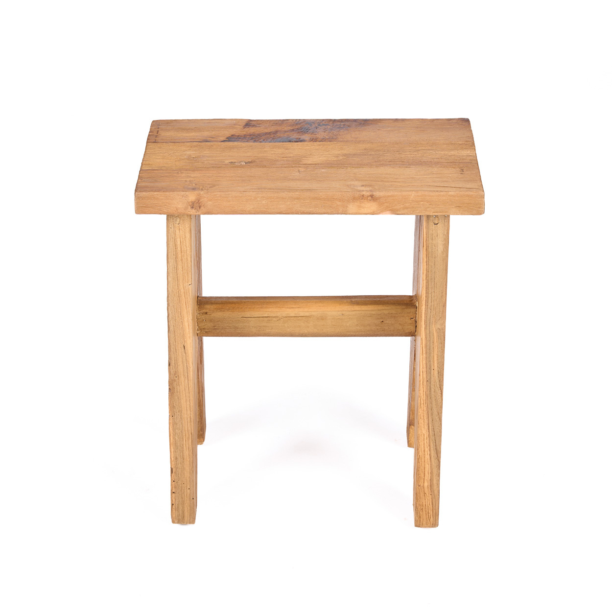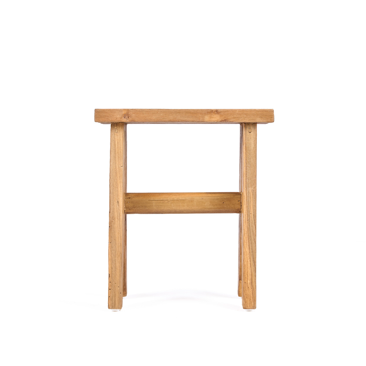 Compact yet versatile, it serves as additional seating, a side table, or a sculptural accent in modern and traditional homes alike. The sturdy legs and smooth top reveal the tactile quality of teak, where every line and surface feels shaped by time.