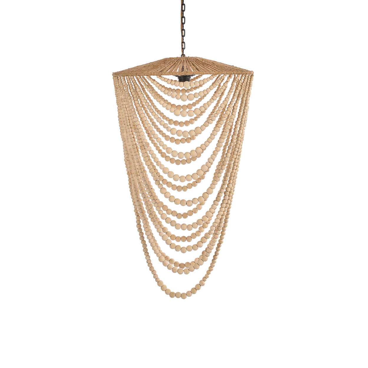 The Wooden Bead Chandelier captures the quiet rhythm of handcrafted design. This large natural chandelier light glows with understated beauty, its curved strands of wooden beads forming an elegant, airy silhouette.