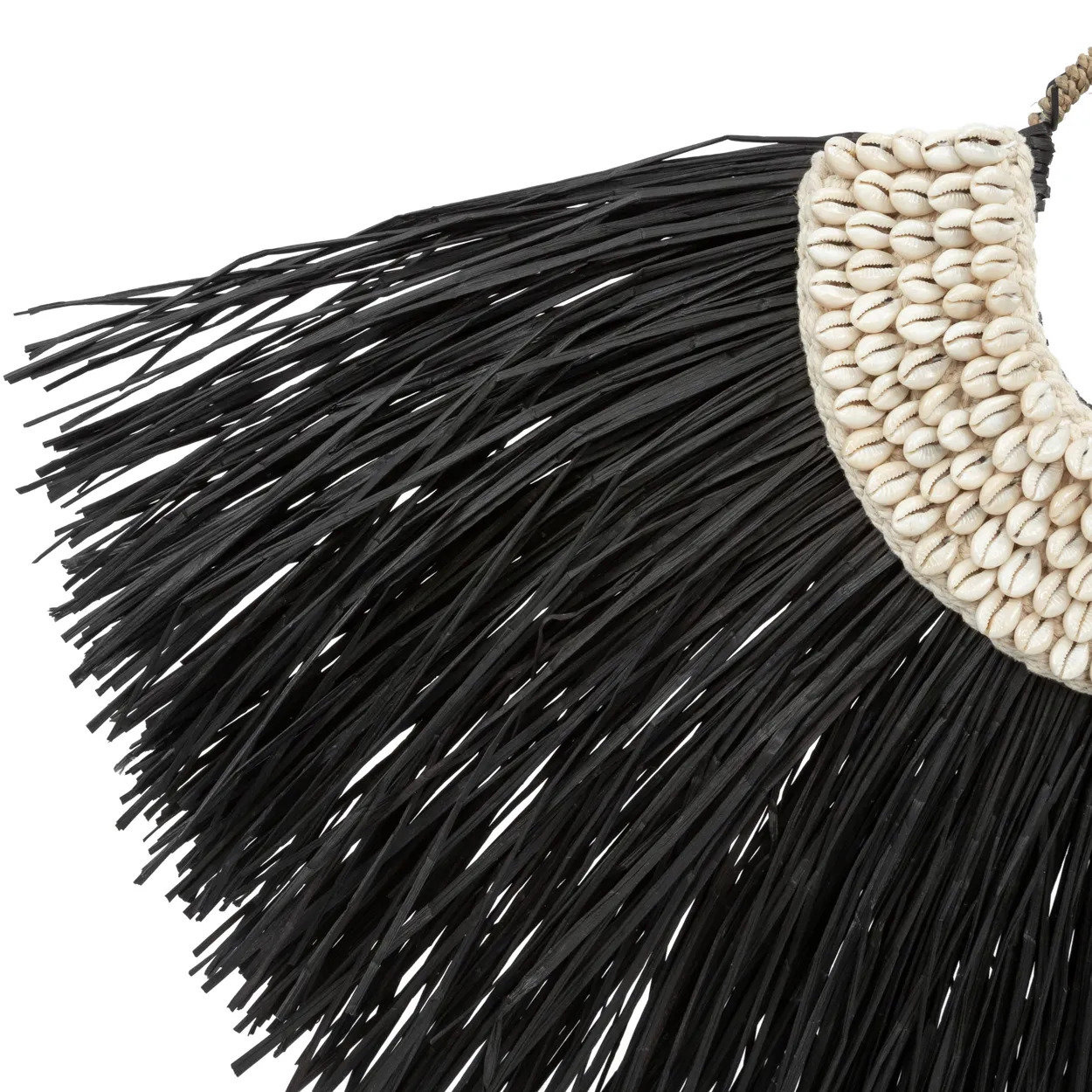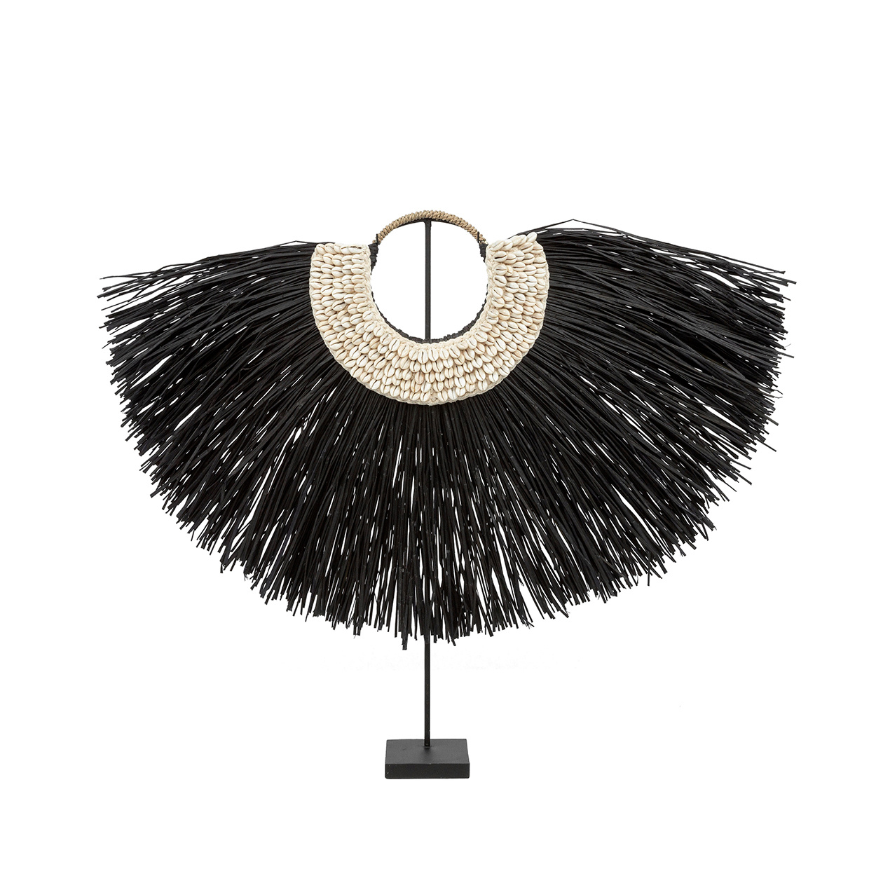 Esta increíble pieza de decoración bohemia sobre soporte está completamente hecha con hierbas de alang y es perfecta para decorar cualquier lugar de tu interior, terraza cubierta o jardín. Su medio círculo central está rodeado de hermosas conchas colocadas a mano.