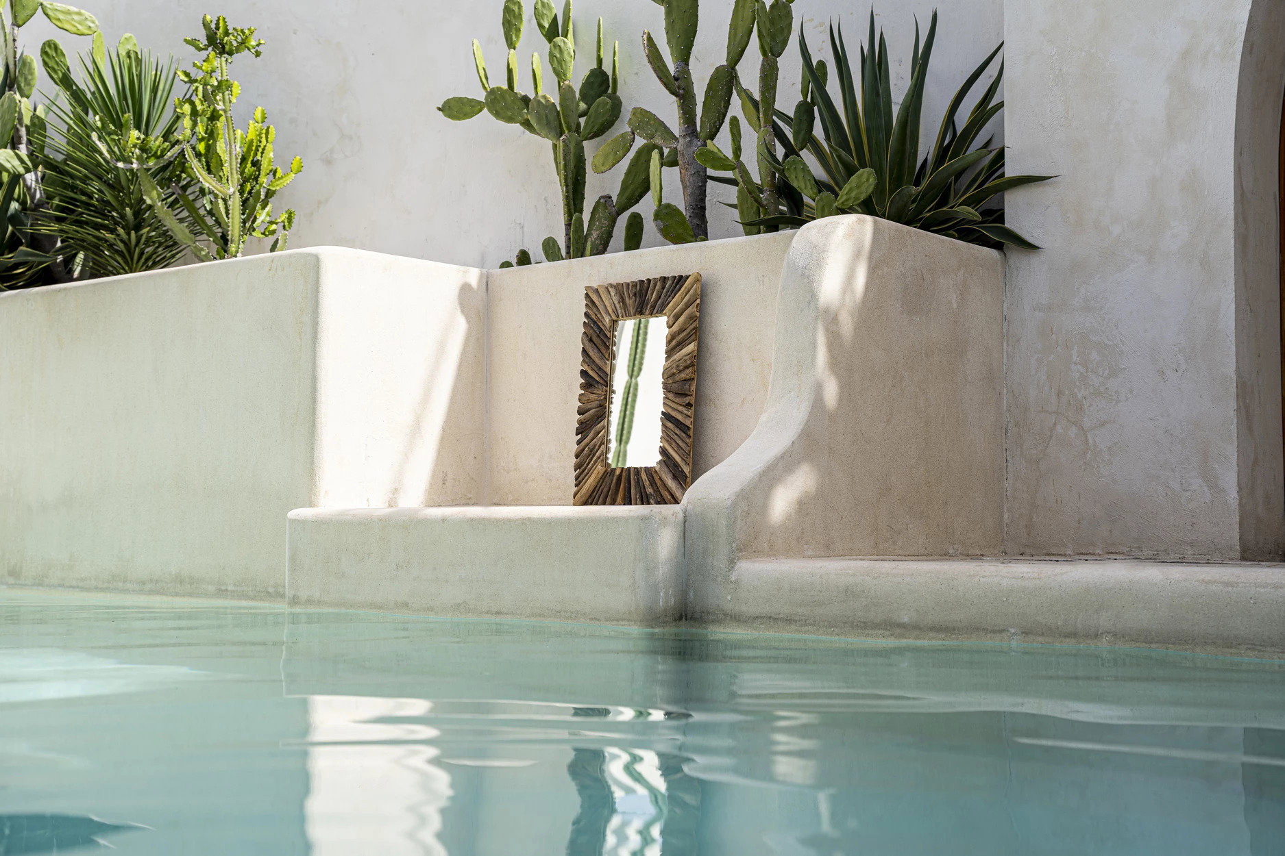Descripción del producto Este hermoso espejo se creó recogiendo trozos de madera a la deriva y colocándolos alrededor del cristal rectangular del centro. Ningún espejo es exactamente igual.