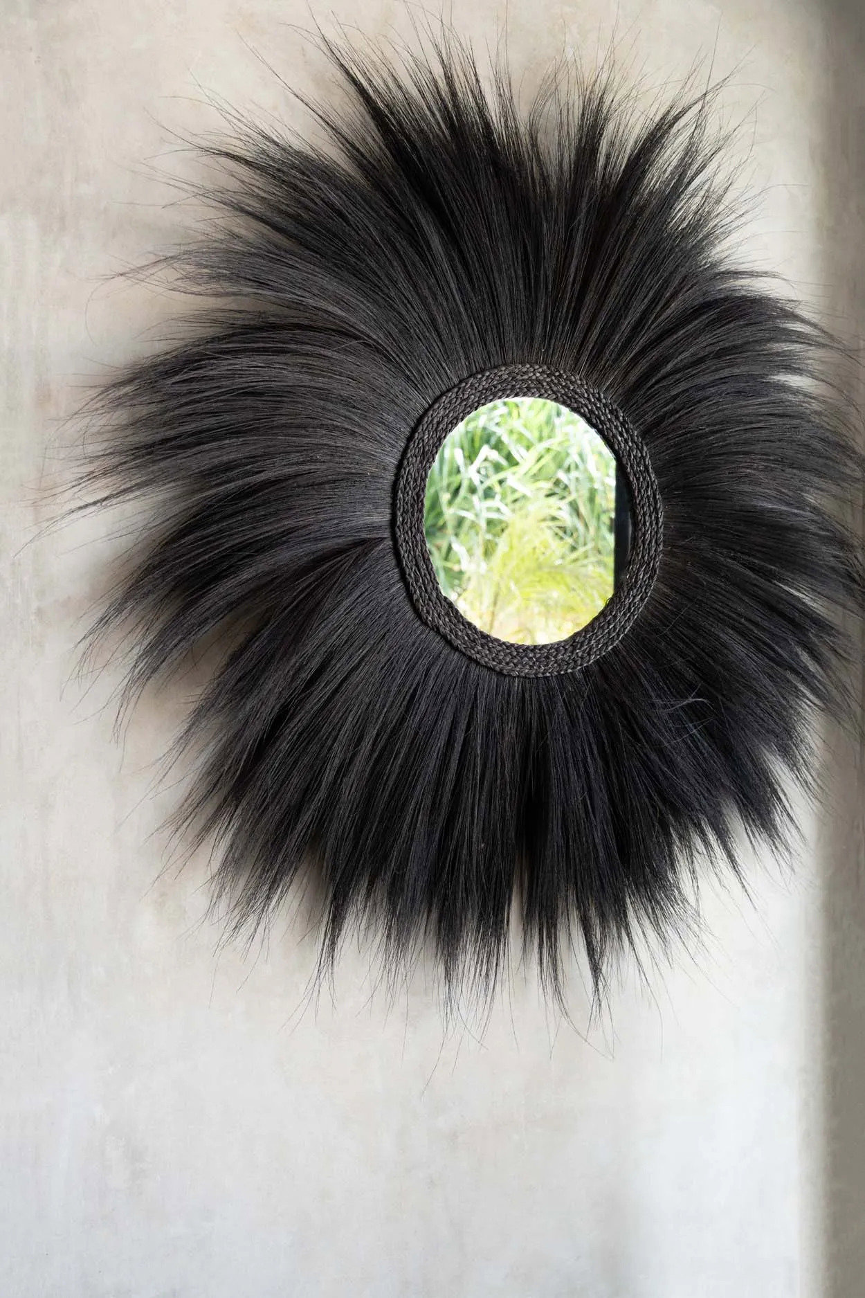 Descripción del producto Nuestro espejo de pared Simba, decorado con crines de hierba Rayung, es un elemento indispensable para darle a tu hogar un toque bohemio. Ahora más que nunca de moda, es perfecto para decorar cualquier habitación interior.