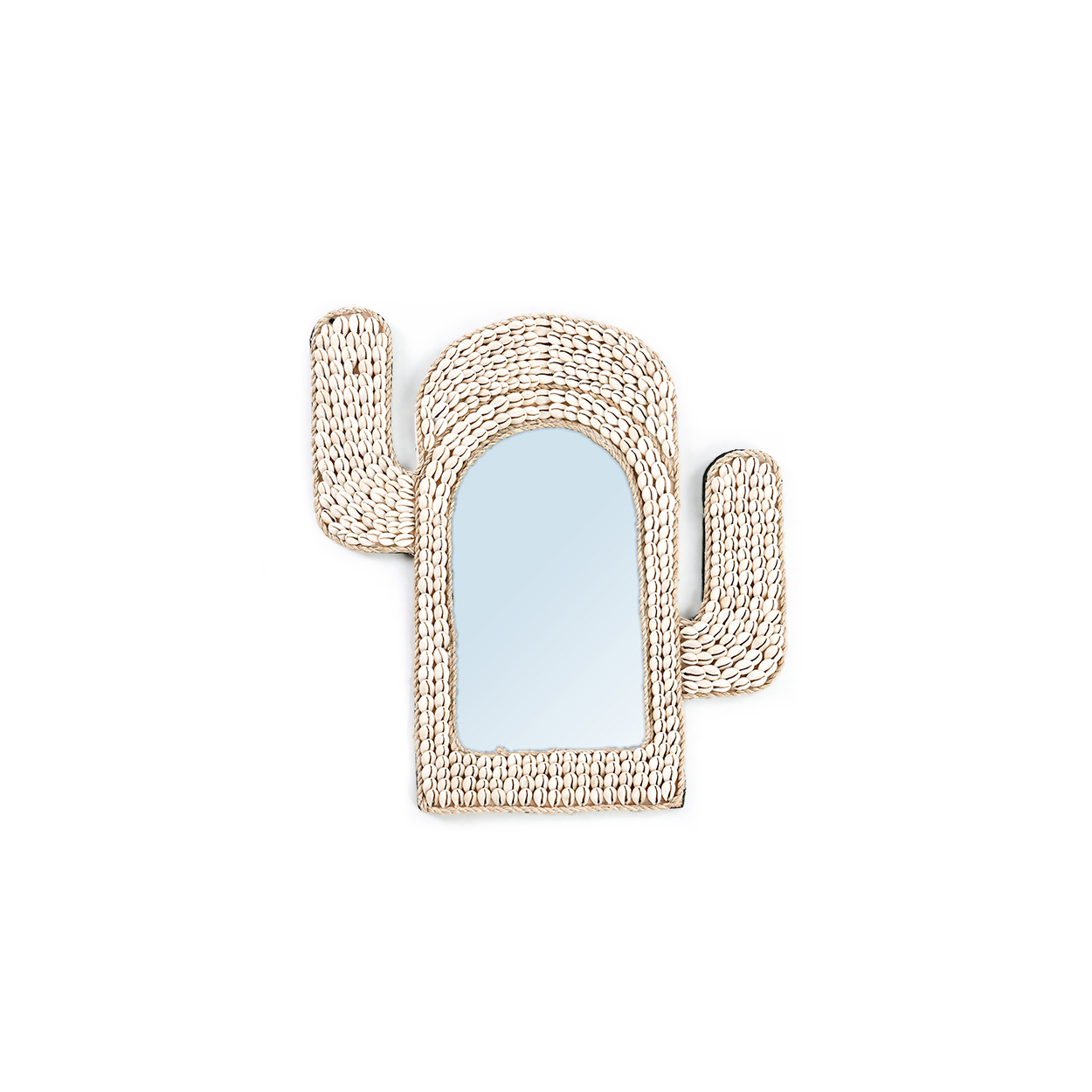 Qué bonito es este espejo con forma de cactus. Fabricado con conchas de cauri, este espejo tiene el tamaño perfecto para tu tocador o pasillo. También es un regalo ideal que encantará a quien lo reciba.