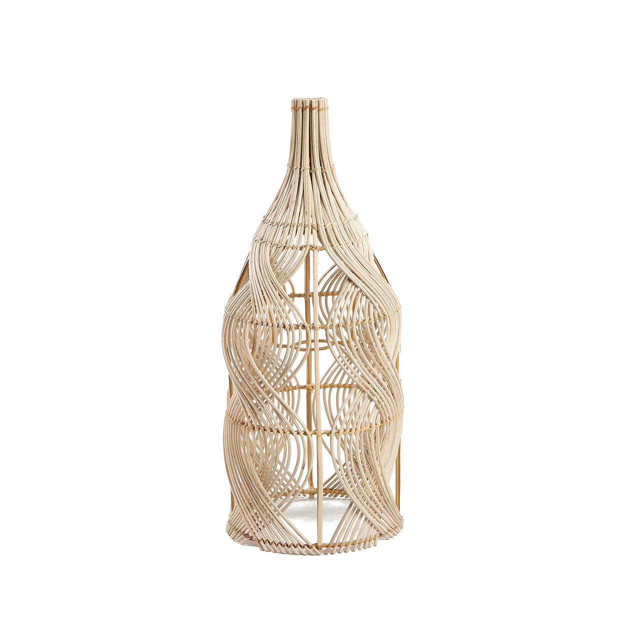 Llena tu espacio con el encanto suave del colgante Garaffa en ratán natural. Tejida a mano en una elegante forma de botella, esta lámpara aporta una sensación acogedora y serena allá donde se coloque. Su silueta afinada y su entramado aireado crean suaves patrones de luz que iluminan con calidez tu mesilla de noche, rincón de lectura o zona de descanso.