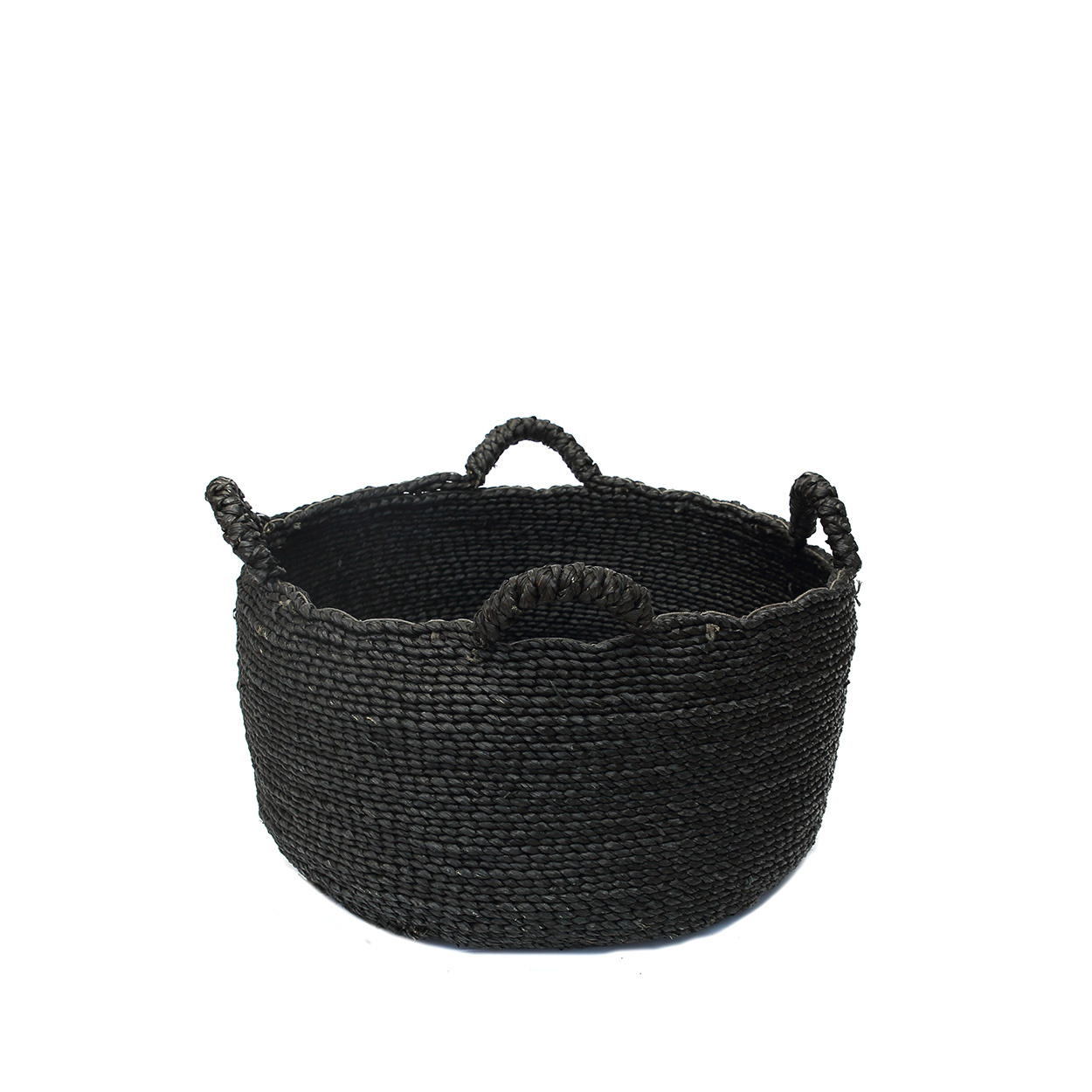Las Les Quatre Mains Baskets en negro están hechas a mano con hierba marina en Indonesia. Su tamaño pequeño es perfecto para organizar y agregar un toque de elegancia natural a cualquier habitación. Una solución de almacenamiento ecológica que combina artesanía y sostenibilidad.