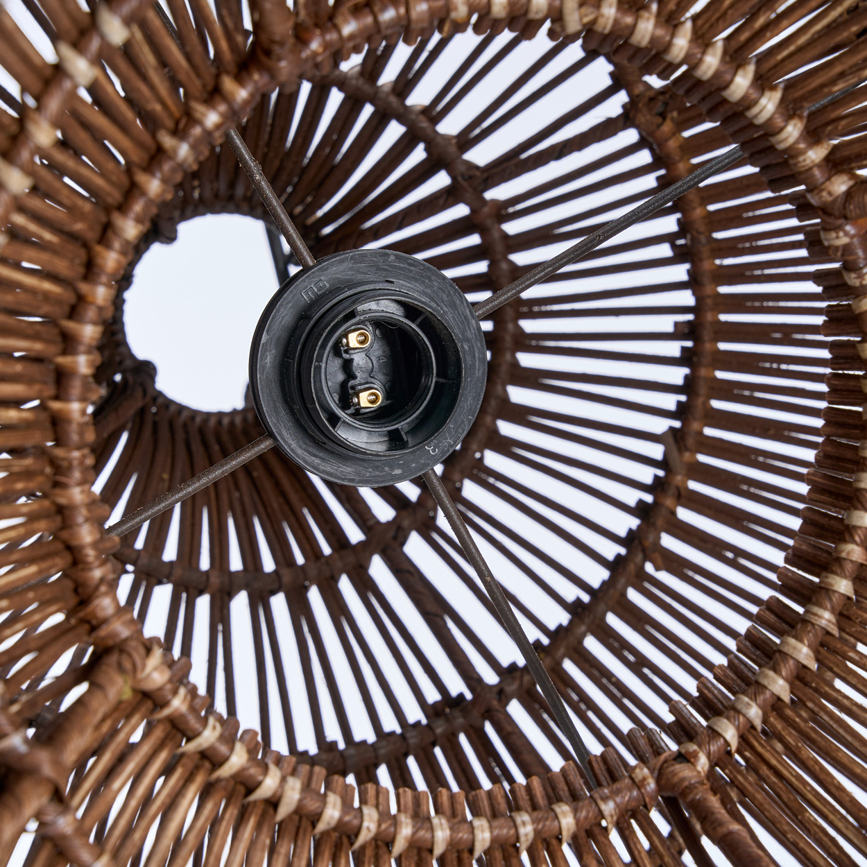 La lámpara de ratán trenzado complementa una variedad de espacios, desde rincones de lectura hasta mesas de comedor, añadiendo textura sin abrumar. Disponible en tres tamaños, es ideal tanto sola como en combinación con otras luces.