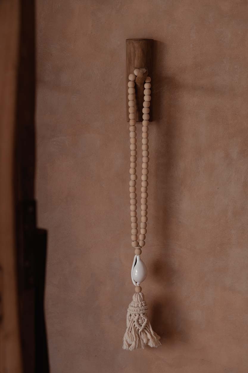 Ligero y versátil, puede llevarse al cuello o como acento decorativo en un bolso, aportando a los looks diarios un toque marítimo. Hecho de madera natural y conchas pulidas, equilibra belleza orgánica y resistencia, creando una pieza refinada y duradera.