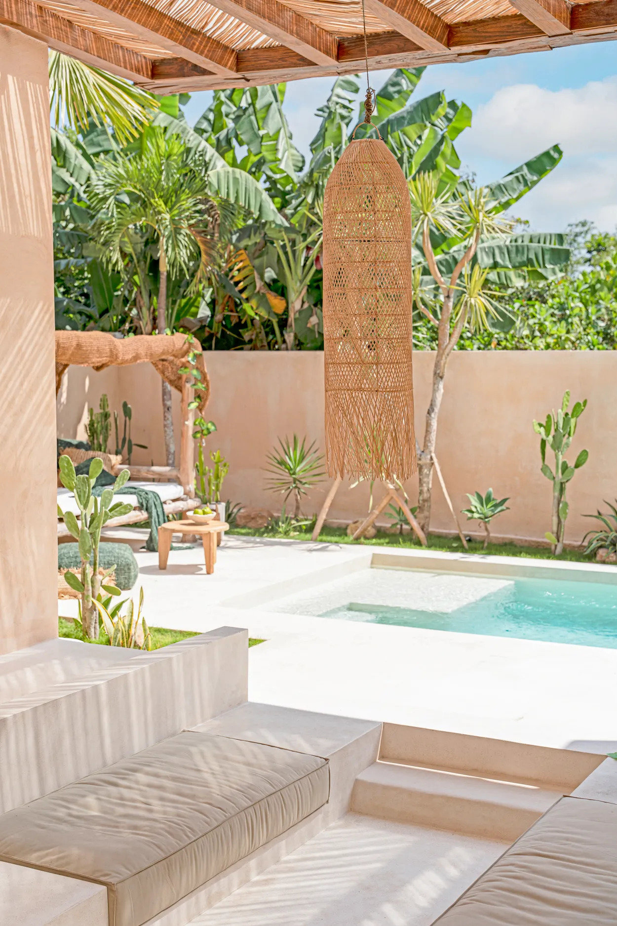 Esta pantalla se vende sin cableado ni enchufe, para que elijas la instalación de techo o tipo de conexión que mejor se adapte a tu espacio. Tejida a mano por artesanos, cada pieza tiene sutiles curvas y texturas que la hacen única.