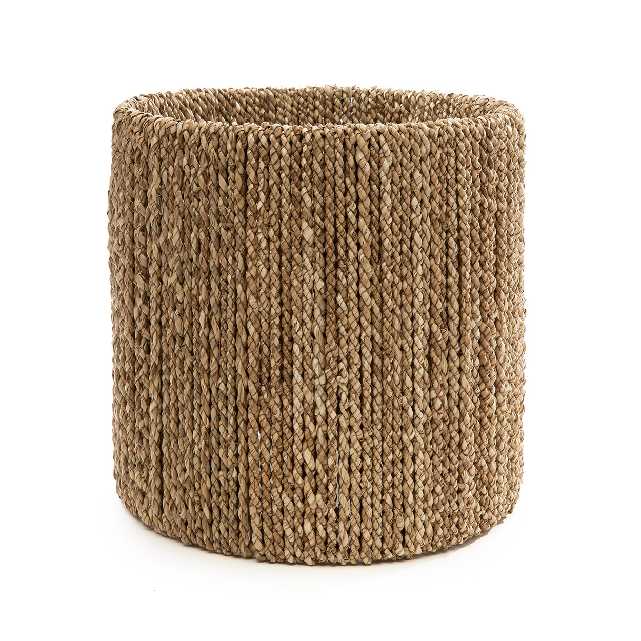 Utilizzato come paralume intrecciato per lampade da tavolo, si adatta con facilità a comodini, consolle e angoli lettura. Realizzato in giunco marino naturale in Indonesia, le tecniche tradizionali generano lievi variazioni di tono e intreccio che riflettono l’autenticità del materiale e del processo.
