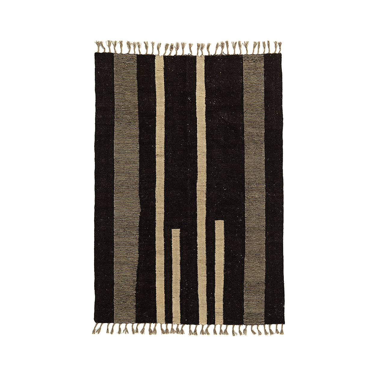 Con 300 × 205 cm, il tappeto offre proporzioni equilibrate per sale da pranzo, soggiorni o ambienti aperti. Le fibre di lana offrono resilienza e morbidezza, mentre il design grafico si adatta al minimalismo moderno come al calore rustico.