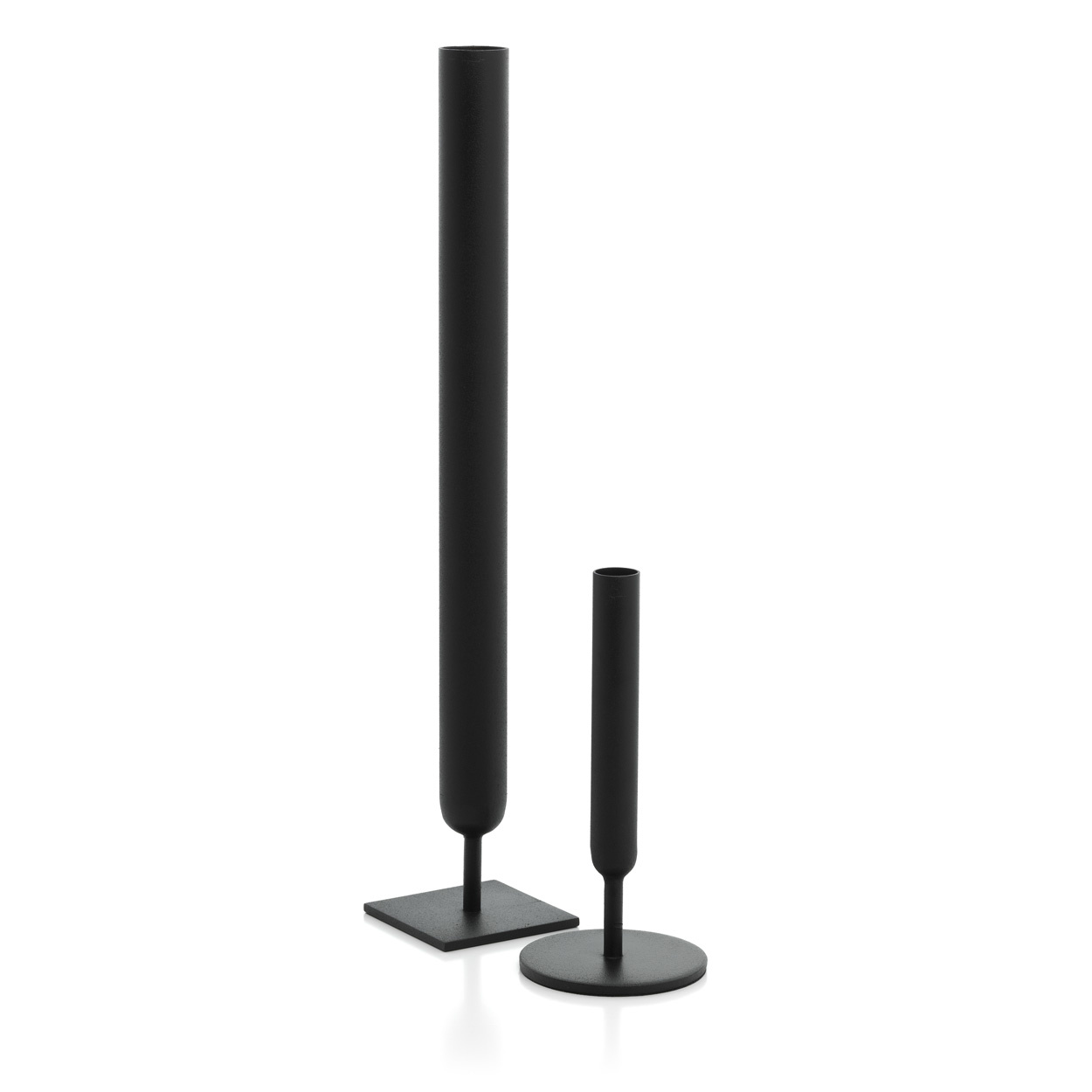 Vaso nero slanciato oversize in design moderno, perfetto come accento decorativo alto o per steli floreali scenografici.