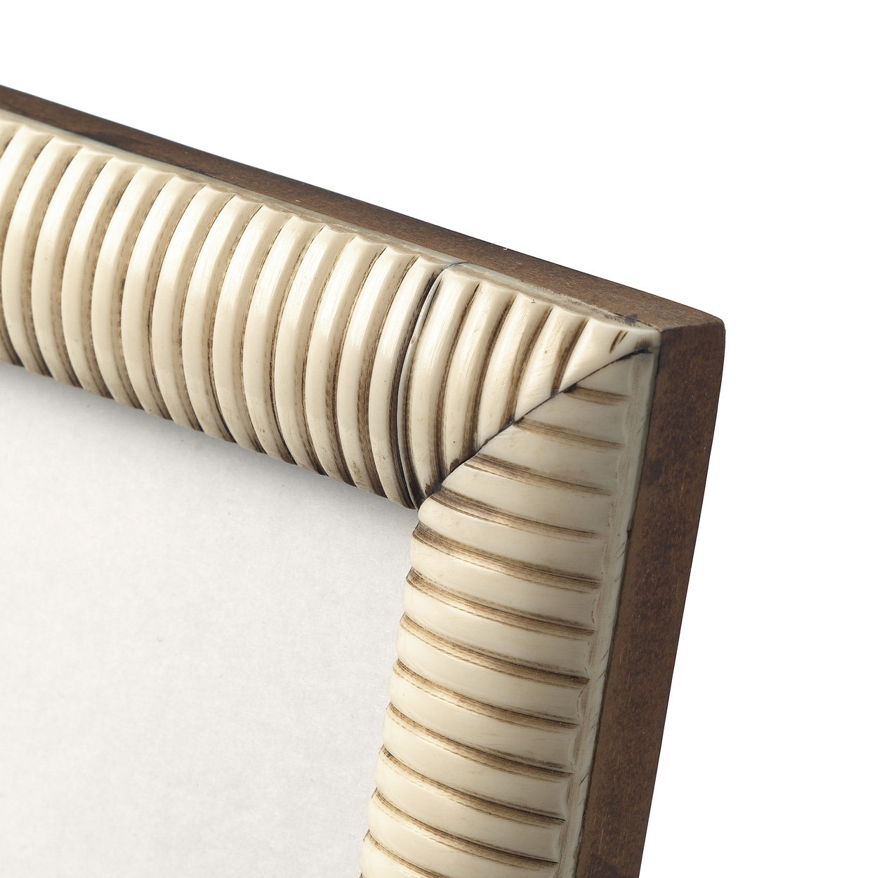 Una cornice unica in osso fatta a mano con patina antica, le linee scolpite evocano viaggi culturali e conferiscono struttura senza tempo agli spazi.