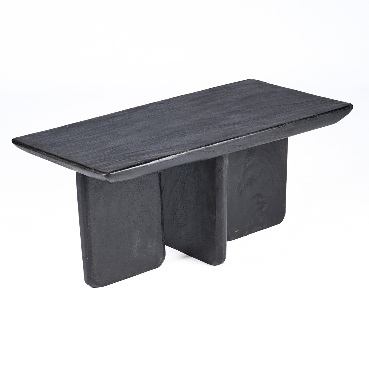 Realizzato in Indonesia con legno di mango sostenibile, ogni tavolo rivela le tracce del suo artigiano. La finitura nera opaca ammorbidisce la geometria e dona calore organico che cresce nel tempo.
