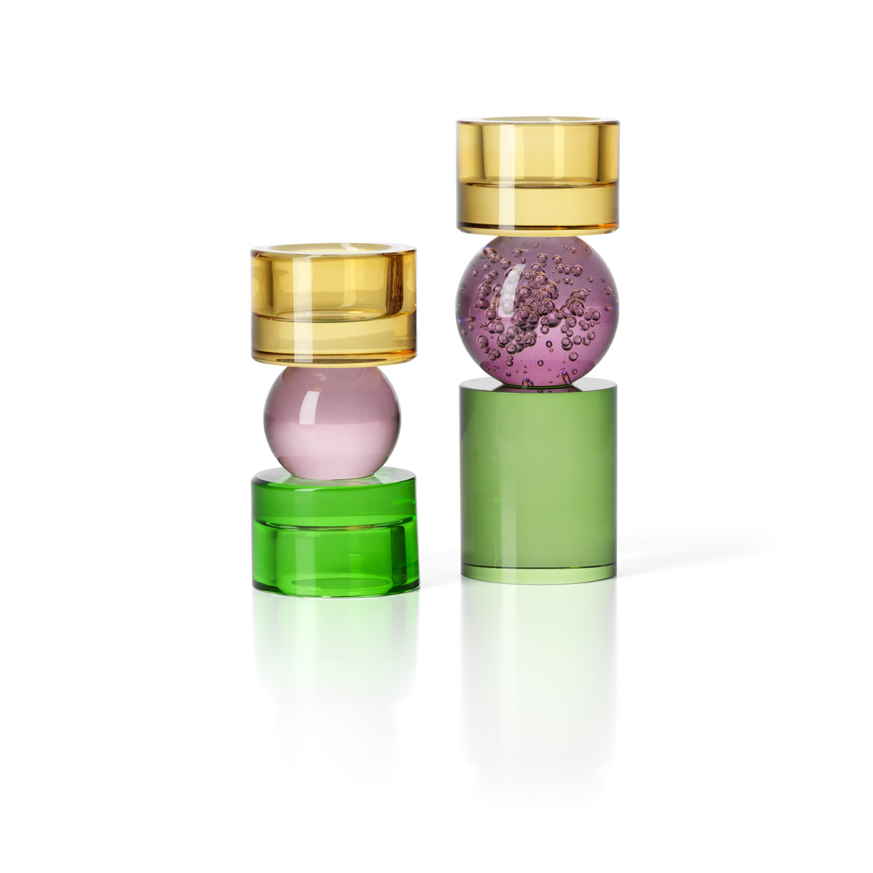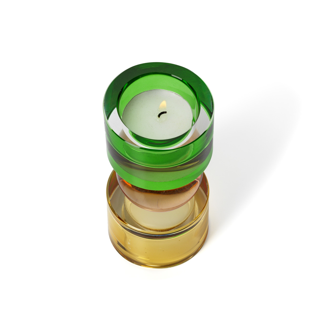 Questo portacandele colorato si adatta facilmente alla vita contemporanea. Che sia su un tavolo, una mensola o una consolle, dona equilibrio e luminosità delicata. La base cilindrica e il nucleo arrotondato catturano la luce creando un ritmo visivo armonioso.