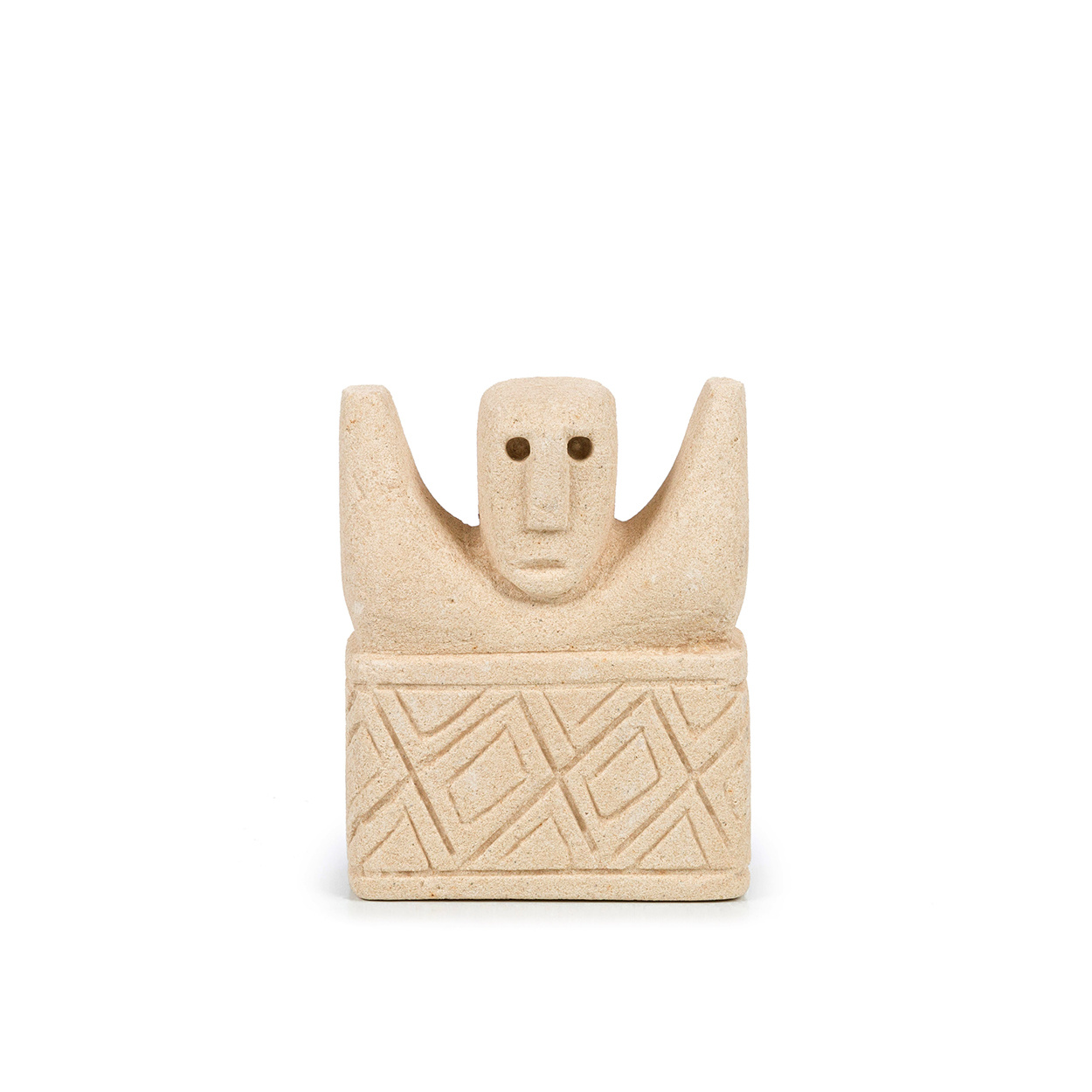 Deze eenvoudige stenen beelden zijn afkomstig van het Indonesische eiland Sumba en zijn met de hand uit zandsteen gehouwen door plaatselijke ambachtslieden. In de traditionele dorpen van Sumba worden beelden als deze geplaatst in en rond de ingang van de hut en bieden bescherming en genezing aan de bewoners binnen.