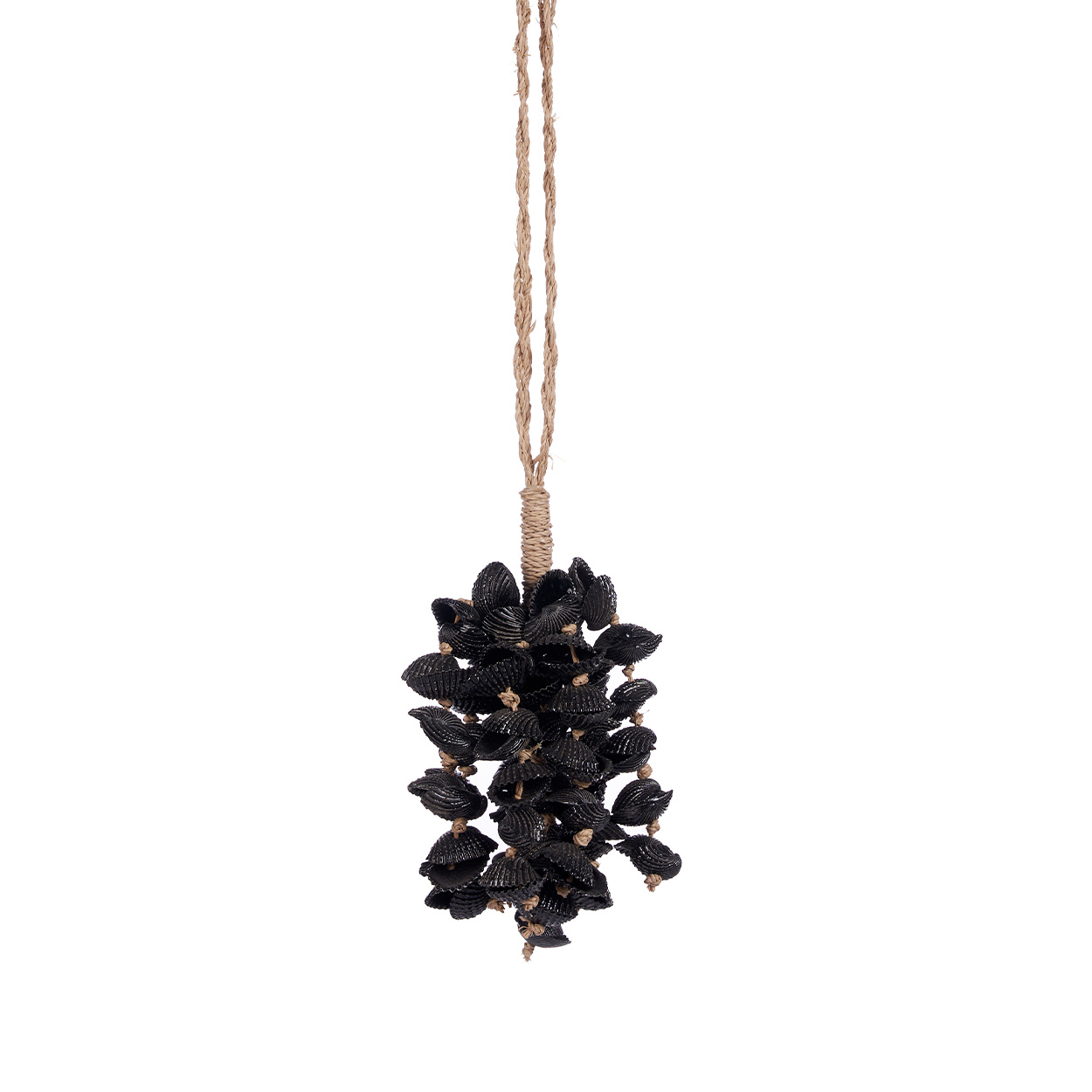 Verfraai je interieur met een zwarte schelpen kwast, waar natuurlijke schelpen samenkomen met gedurfd design voor een chic accent.