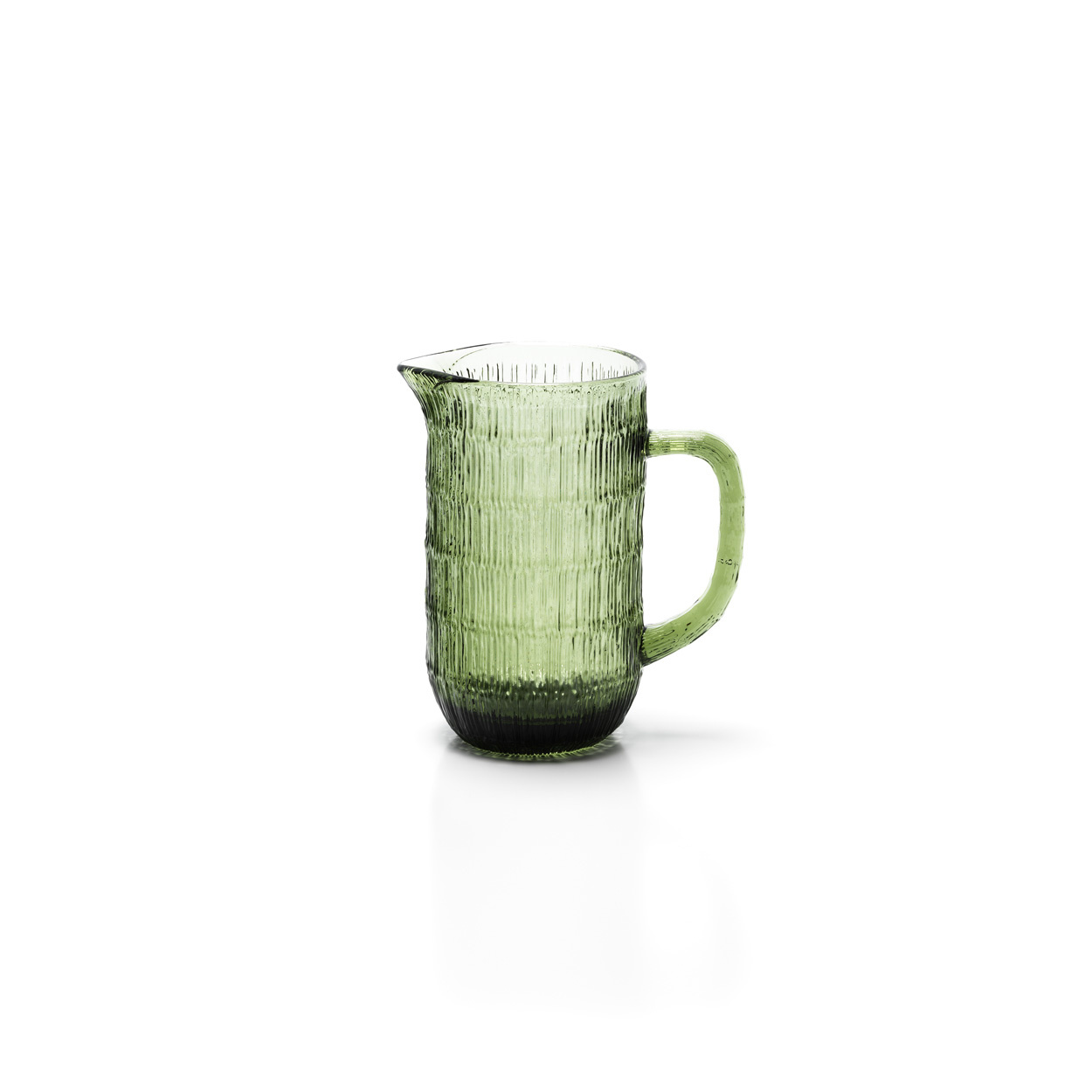 De Moss Ripple Karaf is een groene glazen karaf gemaakt van gerecycled glas, ontworpen met een organisch golvend patroon dat zowel tastbaar als verfijnd aanvoelt. De hoge vorm maakt hem ideaal voor het serveren van alles, van fris water tot zomerse sangria of versgeperst sap, terwijl de stevige basis stabiliteit aan de tafel garandeert.