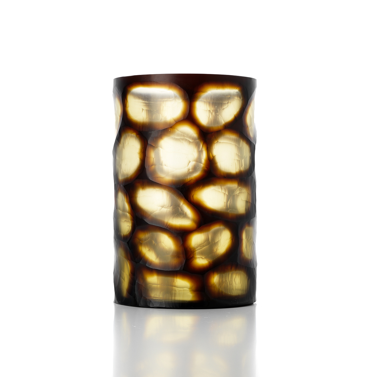 De Vague Dorée Vaas onthult de poëzie van gesmolten glas. Deze extra grote amberkleurige glazen vaas vangt licht in een mozaïek van honingtinten en creëert een zachte, gouden aanwezigheid die elk interieur transformeert.